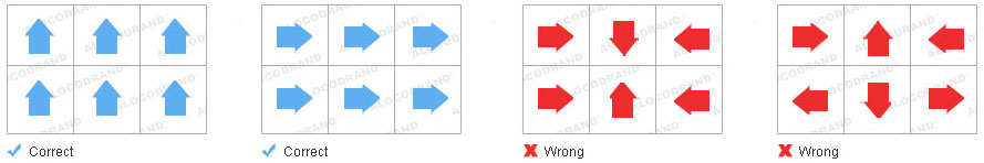 To eliminate the possibility of having color shade reflection difference among panels on single building surface, it is recommended that all panels to be install in one single direction according to arrows printed shown on protective film of the individual panels running parallel as per illustration below :